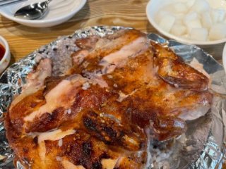 닭 한 마리를 그냥 기름으로 튀긴 게 아니라 전통방식 장작불에 구워서 튀김옷도 얇고 담백해요!