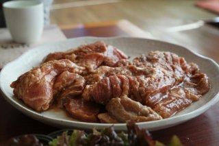 숯불에 구워서 육즙은 가둬두고 겉은 살짝 탄 듯한 바삭함,