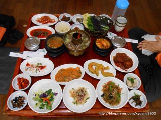 밥 한 공기에 반찬이 15개쯤 나오고,
